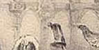 The king, seated on the throne to the right receives courtiers, ministers, public servants and others. All are depicted as pears. Queen Marie Amélie is a Neapolitan pear and the king's sister, Princess Adélaide sits on a cushioned stool in the lower-right corner. Pears are also shown in the designs of the carpet, the stained glass windows of the background and nestled in other architectural elements.