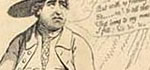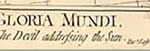 British Museum Description by M. Dorothy George (More ...) 6012 GLORIA MUNDI, OR—THE DEVIL ADDRESSING THE SUN. Fox, with the legs and brush of a fox, and with horns like those of a cow, tipped to prevent mischief, projecting through the crown of his hat, stands on an E. O. table, which is placed on the summit of the globe (over the North Pole). Above, in the upper r. corner of the design is a bust portrait of Shelburne, within a circle which represents the sun and is sending out rays. He smiles cynically, looking down at Fox. Fox stands full-face, his head slightly turned upwards and to the r. towards Shelburne, saying, To thee I call, His waistcoat pockets are turned inside out to show that he is penniless, and the E. O. table ... indicates that gambling is the cause of it. On the globe is sketched a map showing the British Isles, N. Europe, &c. Clouds rise above the globe (l.) and form a background. |